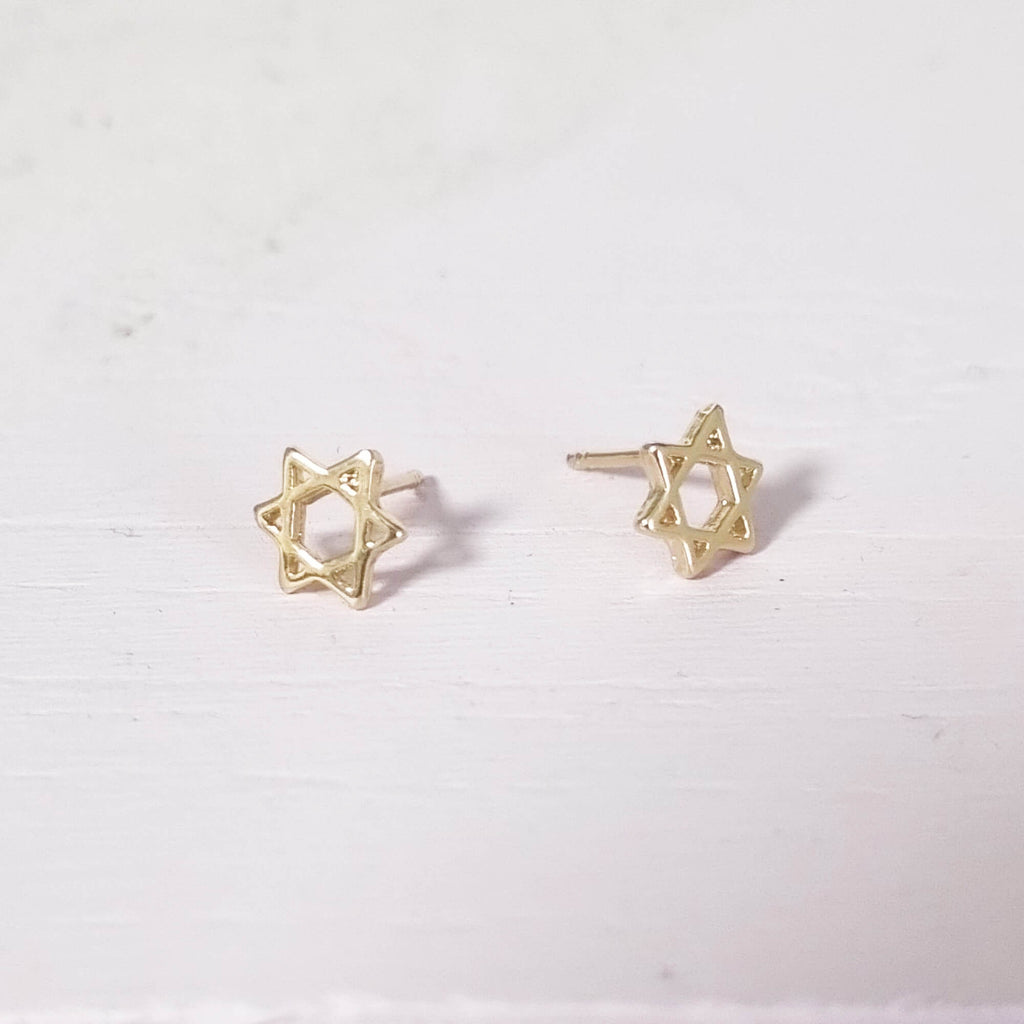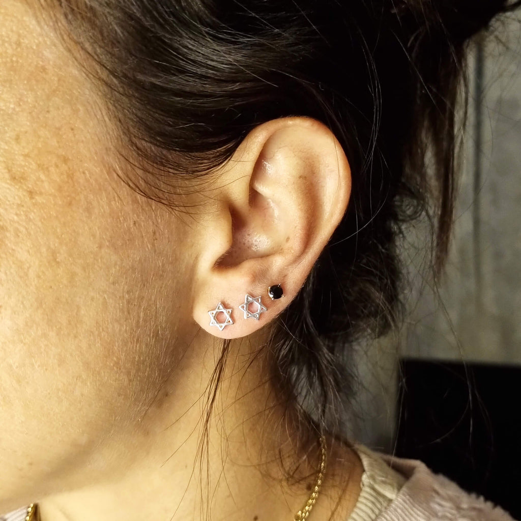 עגילי מגן דוד משובצים אבן אופל - עגילי כסף, חלק מקולקציית התכשיטים המינימליסטית שלנו.