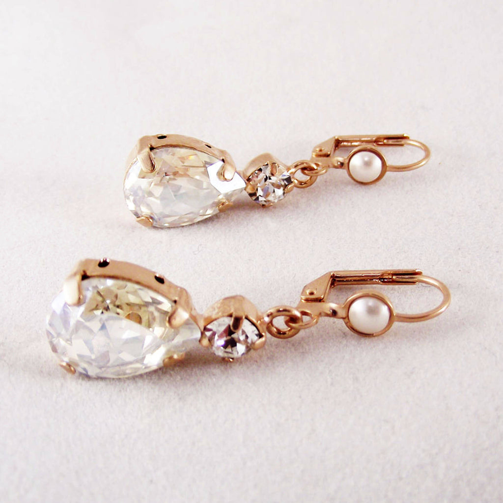 Teardrop Crystal Earrings - A beautiful drop crystal & pearl bridal earrings, a part of our bridal and gown jewelry collection